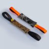 Una pelota de cuero con chirriador interno, un mordedor de peluche premium y una cuerda elástica que absorbe el impacto del juego.